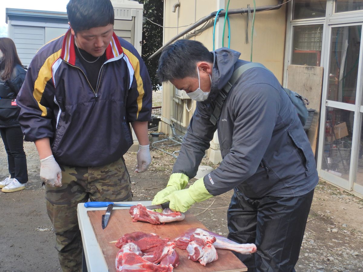 午後に開催される解体実習の様子(長野県ハンターデビュー講座)