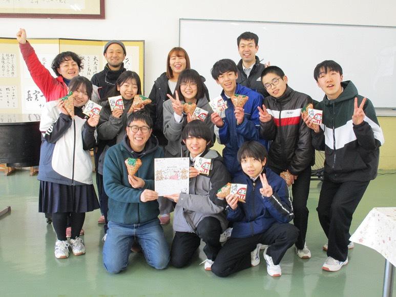 伊那市長谷地区で農業に携わる個人・団体で組織する「はせ農エン隊」のメンバーが1月22日、高校受験を控えた長谷中学校(伊那市長谷)の3年生を応援しようと同校を訪問した。