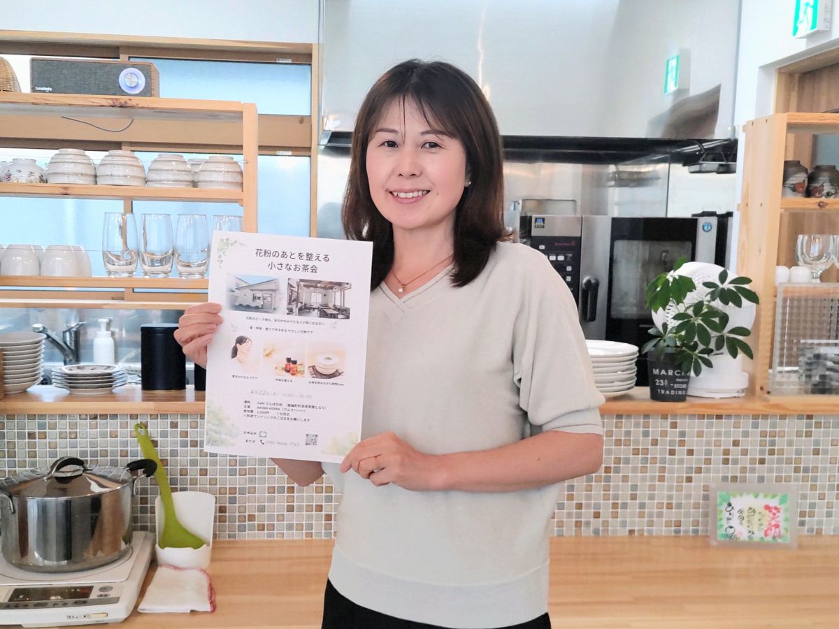 花粉の時期の不調について話す「花粉のあとを整える 小さなお茶会」が4月22日、「cafeさんぽ日和」(箕輪町中箕輪)で開催される。