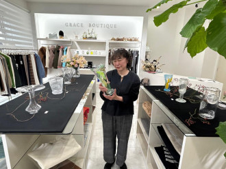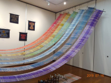 農業公園「みはらしファーム」内にある施設「草の家」では、伊那の伝統的な「裂き織り」や染め物体験などを行っており、27年にわたって活動を続ける、地元住民から成る「裂き織り婦人会」と共に展示会を企画した。企画担当の桃井八重さんは「縦糸は糸を使うが、横糸には古布を割いたものを糸状にして織り込んでいくのが裂き織り。この地域では使わなくなった古布を再利用してきた歴史がある。生活必需品を作るという始まりだが、アート的な要素でデザインをすることもできる」と話す。