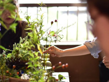今回の企画では、9月の松喜オープニングセレモニーでも一輪挿しのワークショップの講師を担当した、生花店・雑貨店とカフェを併設する「CONTE(コント)」(南箕輪村)店主の有賀晶子(しょうこ)さんを招く。平賀裕子さんは「参加者には花器や花を自分で選ぶところから体験してもらう。講師の晶子さんが花をたくさん用意してくれるので、頭で難しく考えずに『これが好き』などの心が動く感覚で選んでもらうと、選ぶ時間も創造の世界が広がり楽しんでもらえるのでは」と話す。
