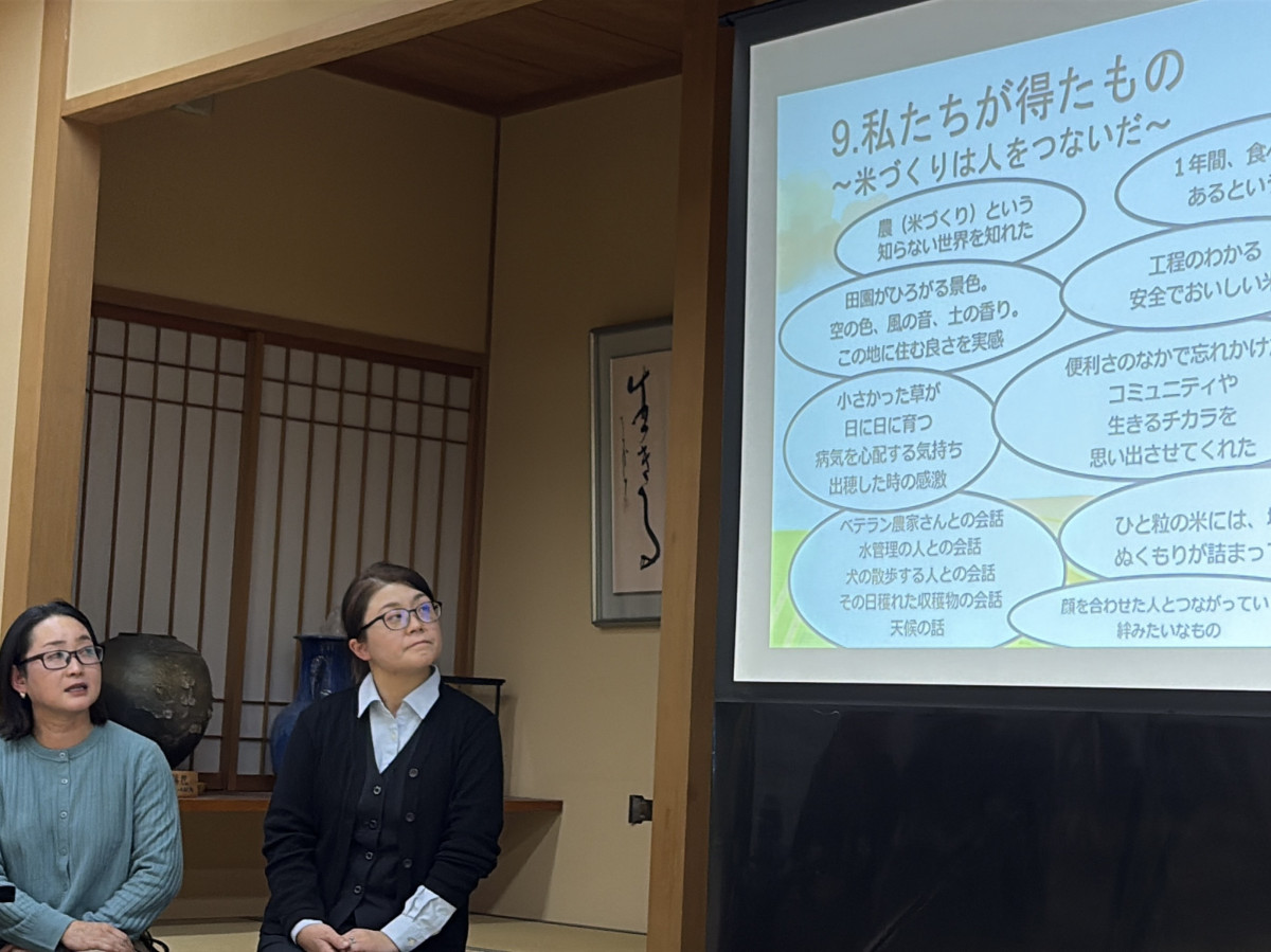 米作りに初挑戦した箕輪町在住・在勤の女性3人が11月12日、「米作り報告会」を箕輪町文化センター(箕輪町松島)で開催した。