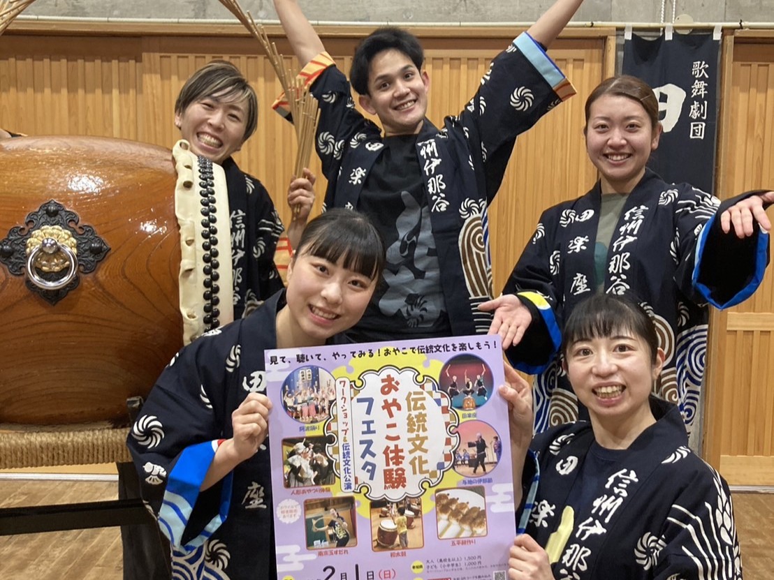 上伊那の伝統芸能を体験する「伝統文化おやこ体験フェスタ」が2月1日、生涯学習センター「いなっせ」(伊那市荒井)で開催される。