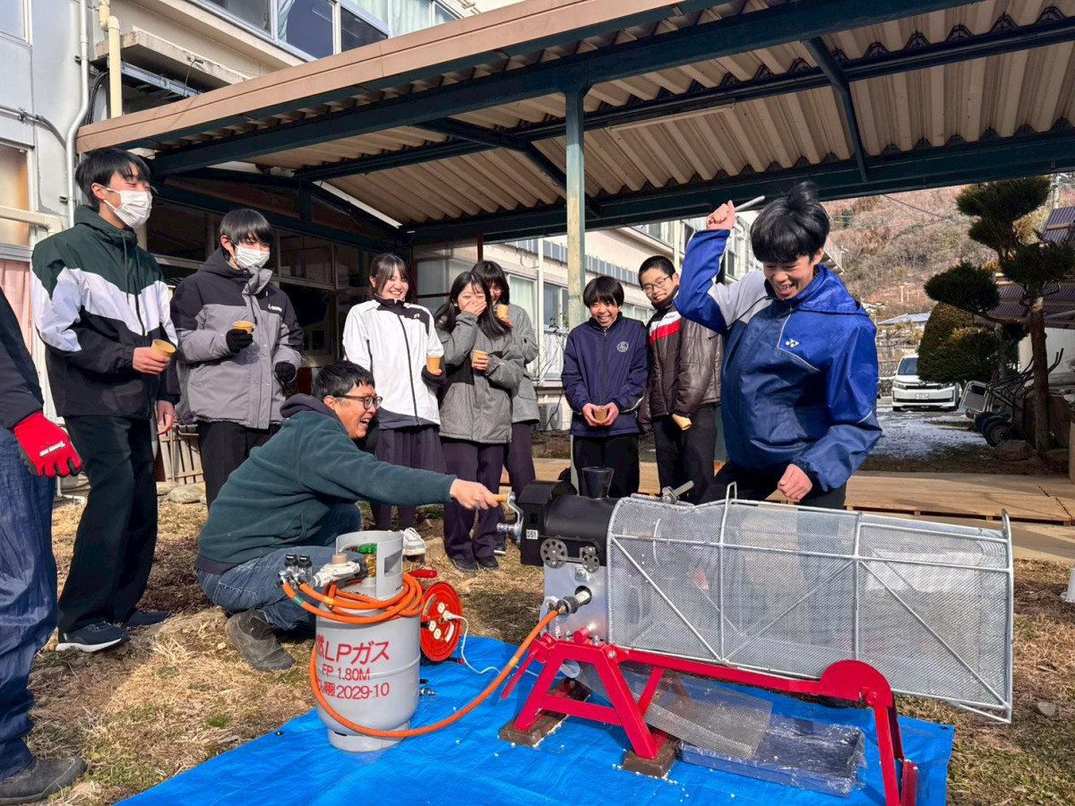 伊那市長谷地区で農業に携わる個人・団体で組織する「はせ農エン隊」のメンバーが1月22日、高校受験を控えた長谷中学校(伊那市長谷)の3年生を応援しようと同校を訪問した。