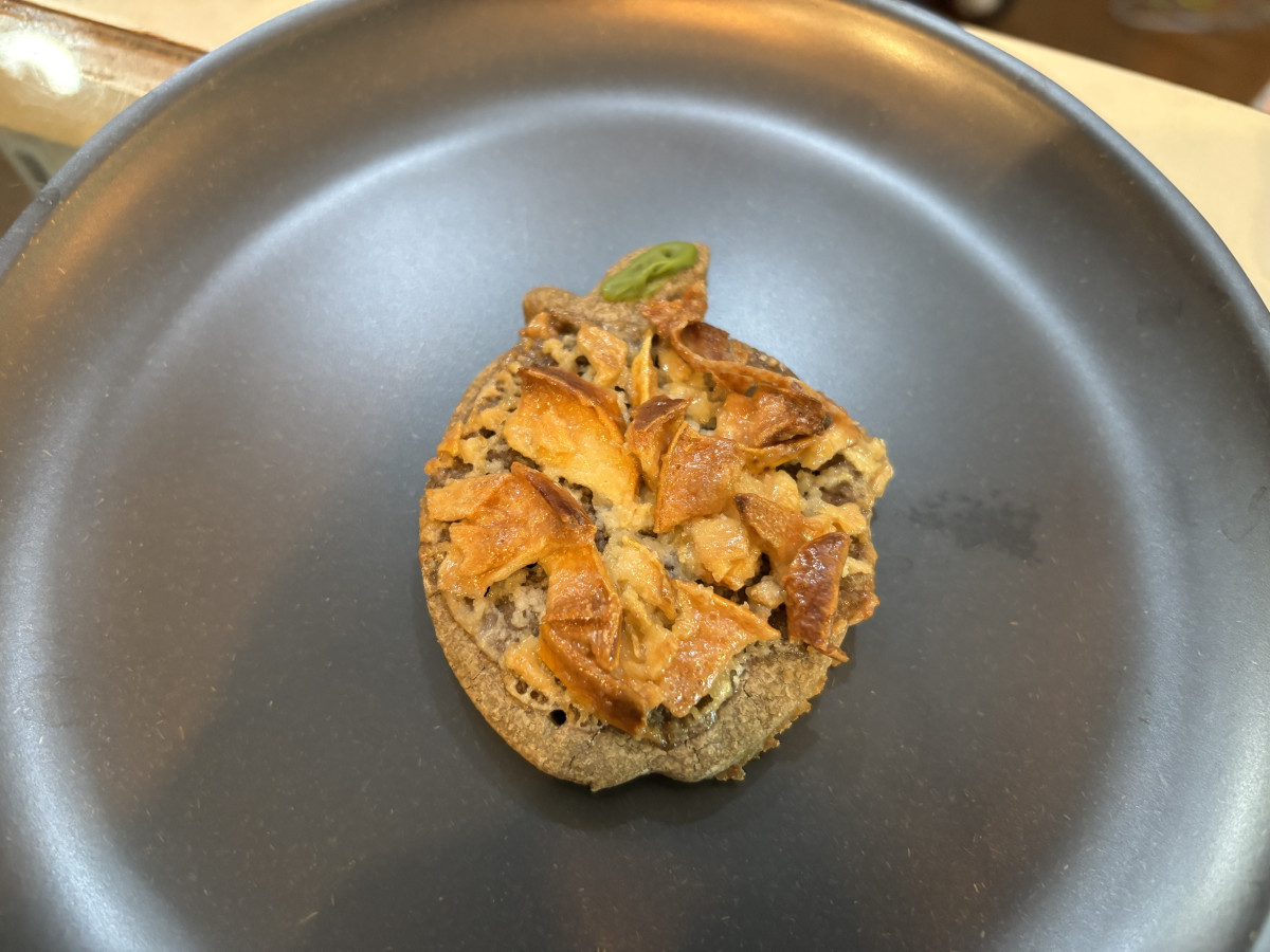 現在開発中の「箕輪産リンゴとほうじ茶のフロランタン」