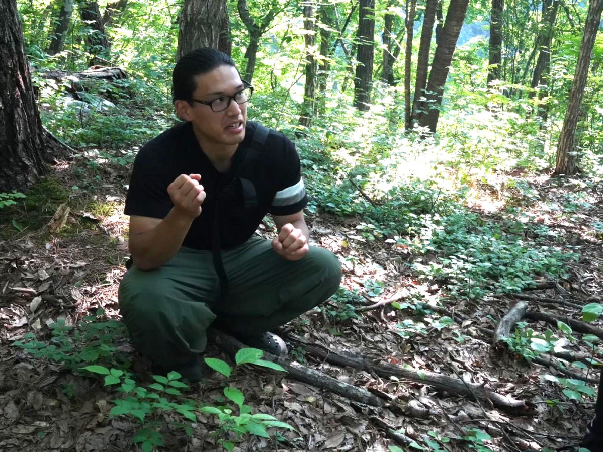 講師は信州大学農学部に通う牧嵜遼詩(まきざきはるし)さん(自然盆栽ワークショップ)