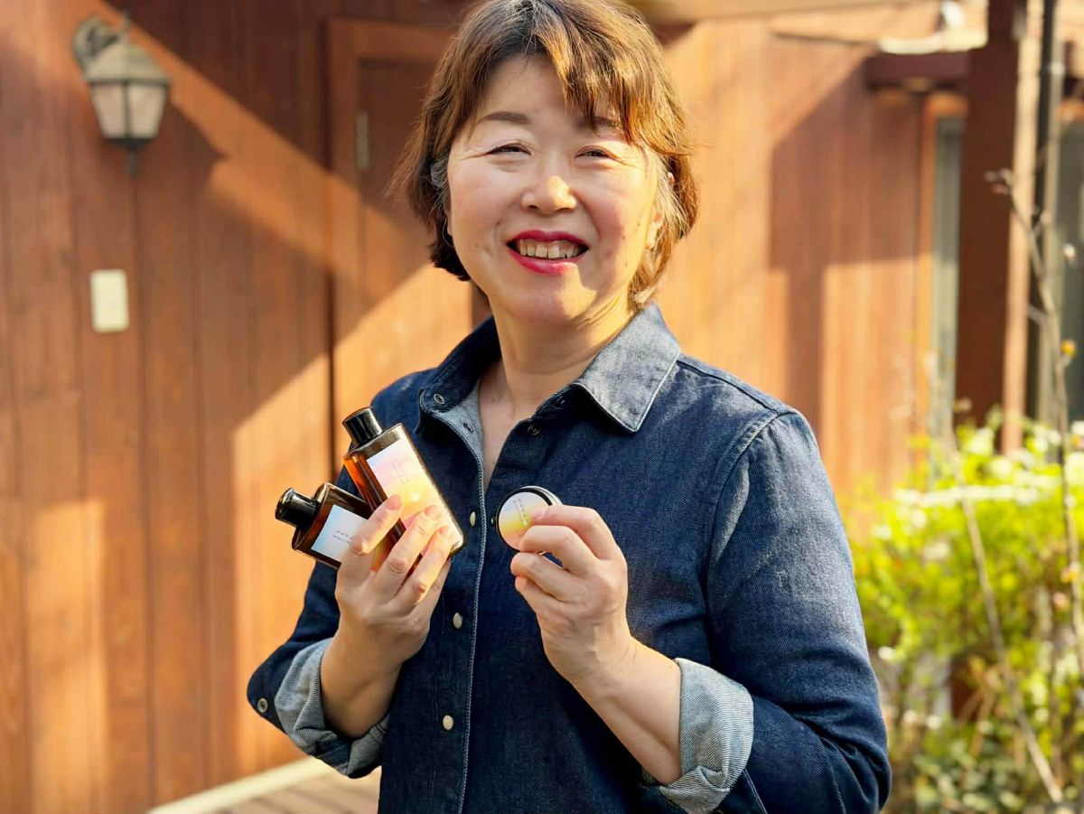 伊那・西箕輪上戸地区の高齢男性から桃畑を第三者承継した大山千佳さんが桃を使った化粧品を開発し、3月3日に予約受け付けを始めた。