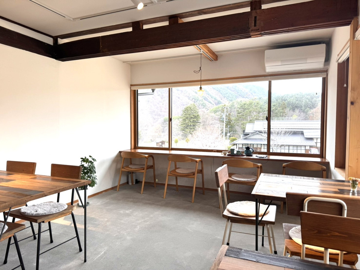 店内の様子。窓からは山あいの景色が広がる(chico cafe)