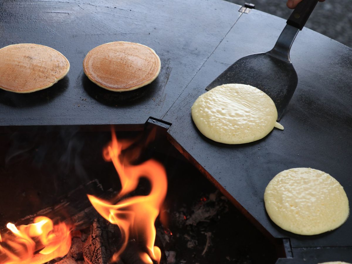 自ら焼いて食べるパンケーキ作り体験は無料で参加できる(FIRESIDE DAY 2026)
